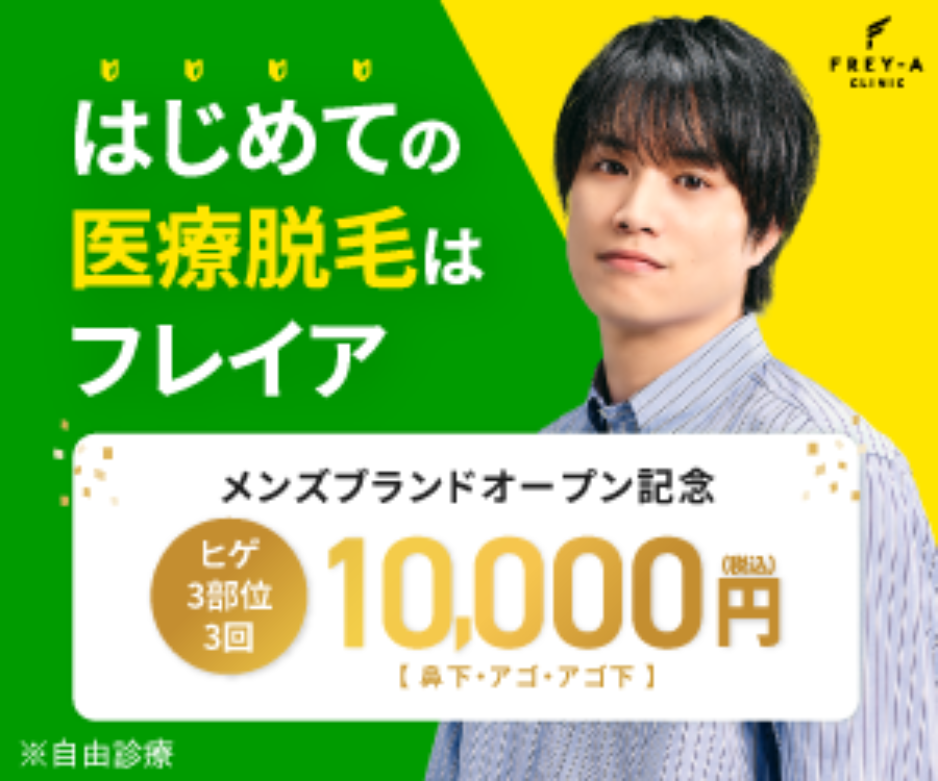 「とにかく早く効果を実感したい」「予約が取りやすいところがいい」という方におすすめなのが、医療脱毛専門の『メンズフレイア』です。